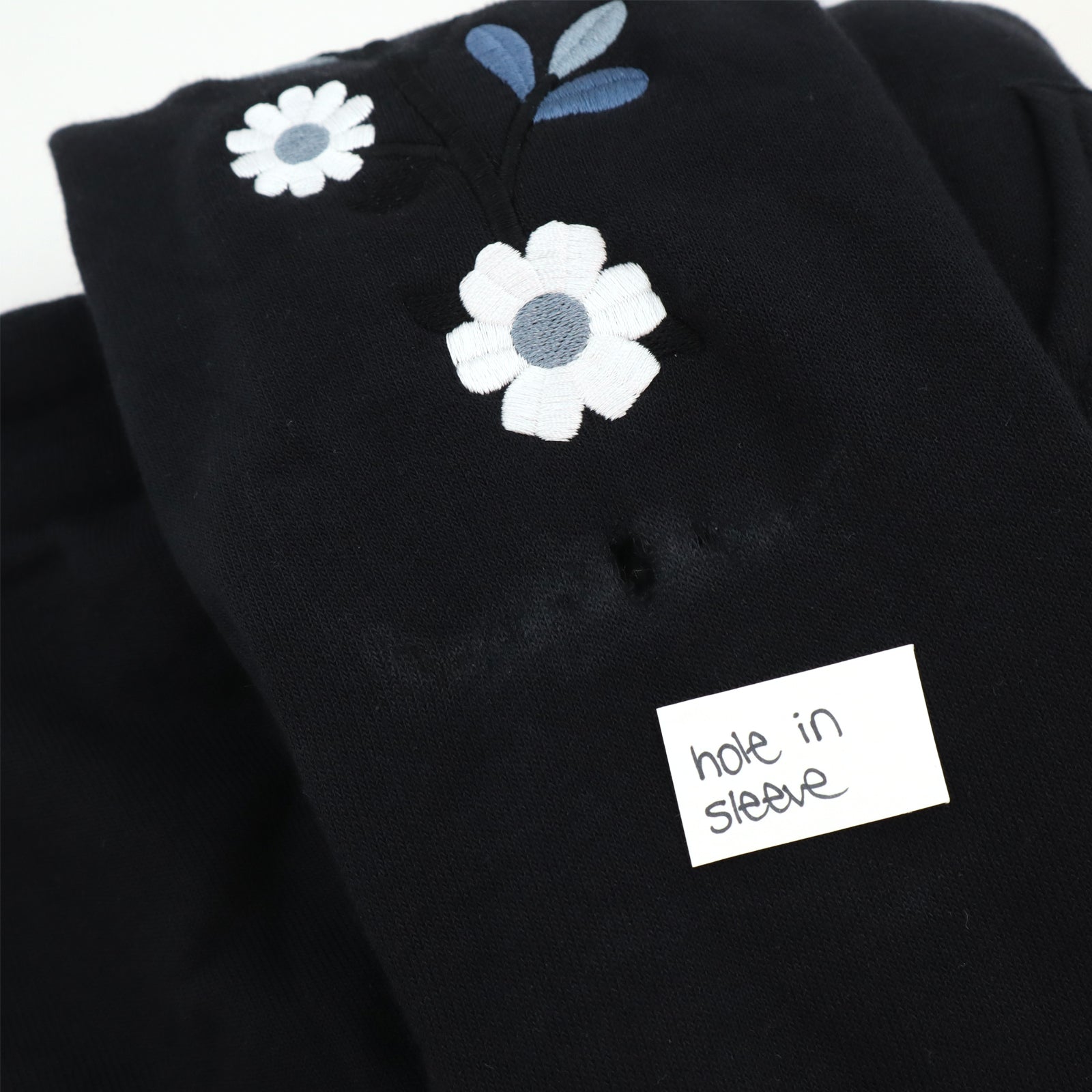 These sweatshirts are marked down since they have defects.